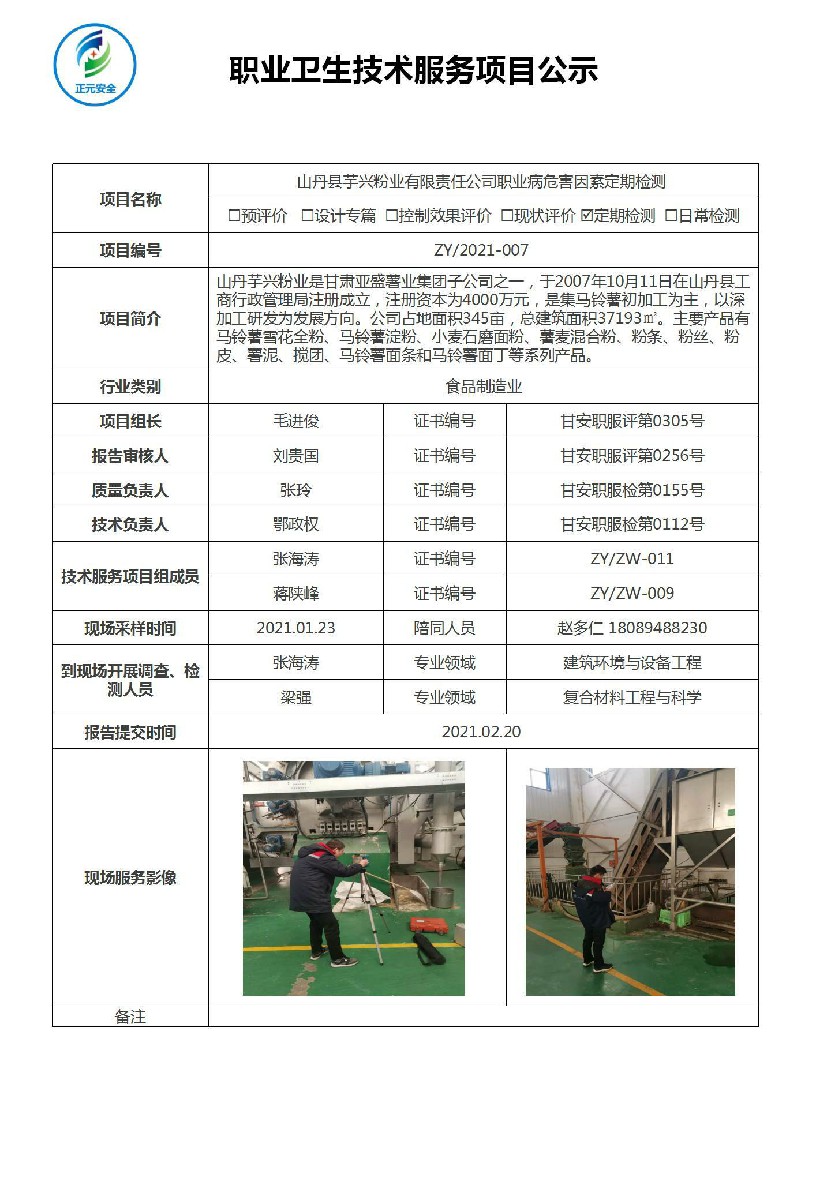 山丹县芋兴粉业有限责任公司10000吨马铃薯全粉生产线职业病危害因素检测