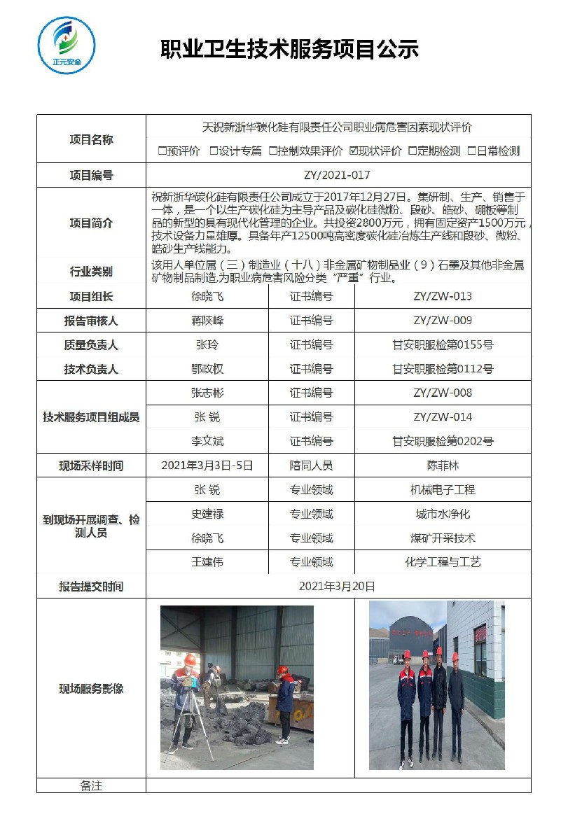 天祝新浙华碳化硅有限责任公司职业病危害现状评价