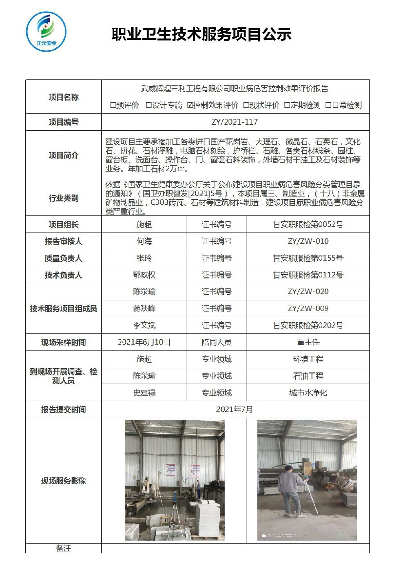 武威辉煌三利工程有限公司职业病危害控制效果评价