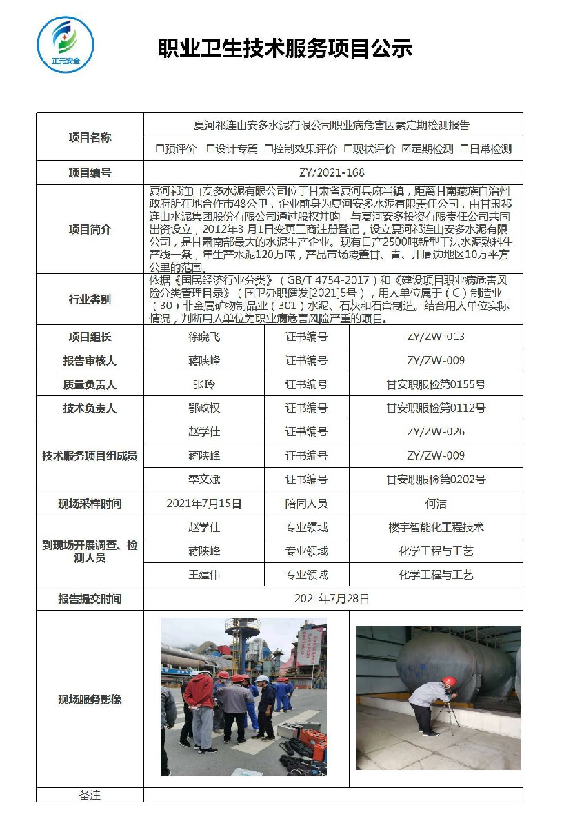 夏河祁连山安多水泥有限公司且隆沟水泥用石灰岩矿建设工程项目职业病危害现状评价