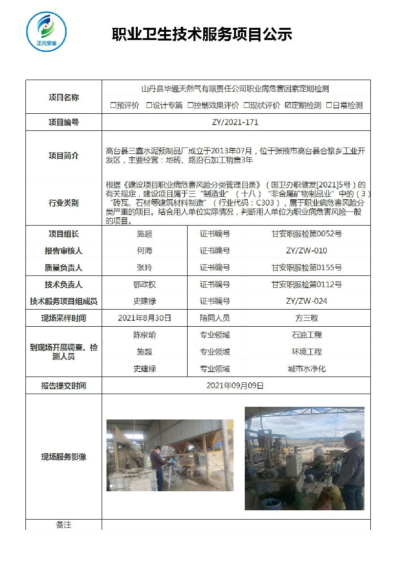 高台县三鑫水泥预制品厂职业病危害因素检测