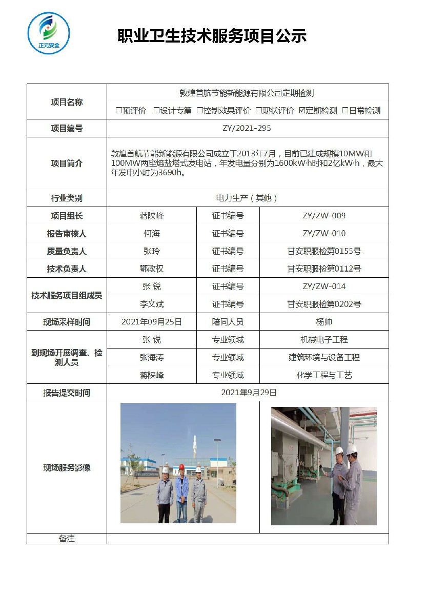 敦煌100MW熔盐塔式光热发电项目、敦煌10MW熔盐塔式光热发电项目职业病危害因素 检测