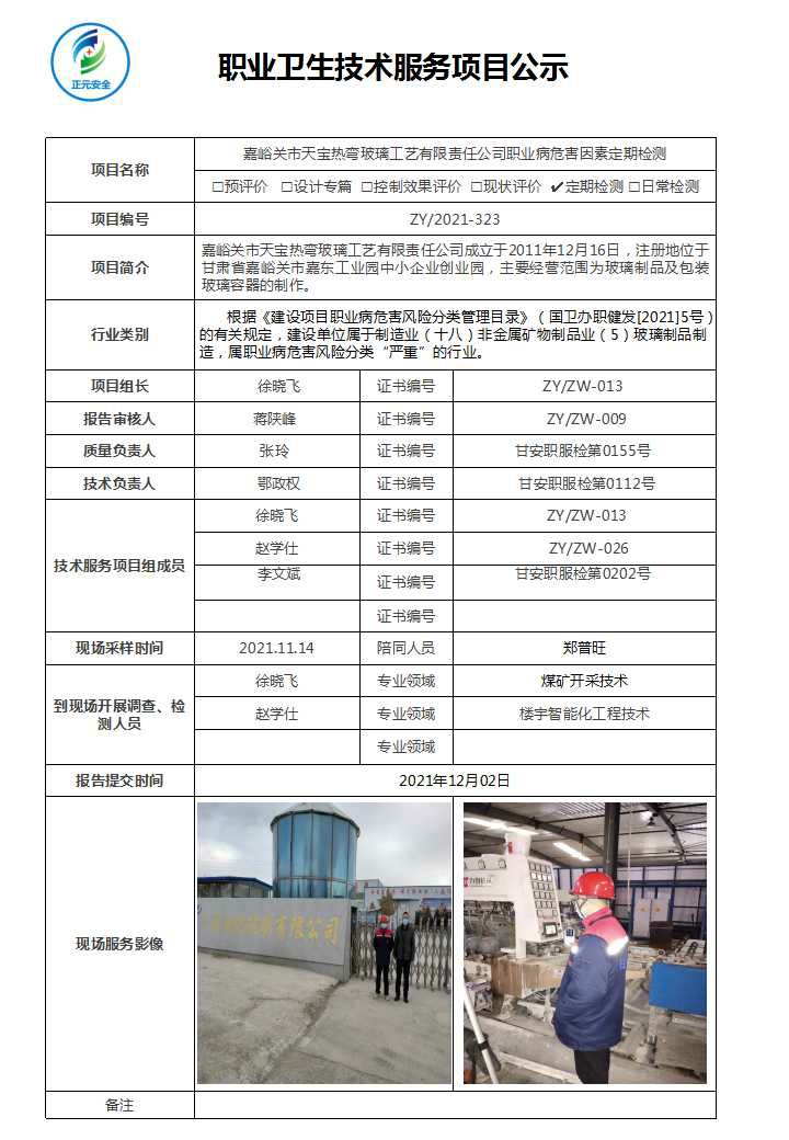 嘉峪关市天宝热弯玻璃工艺有限责任公司职业病危害因素检测