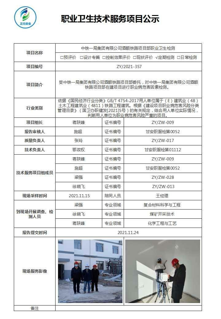 中铁一局集团有限公司酒额铁路项目职业病危害因素检测