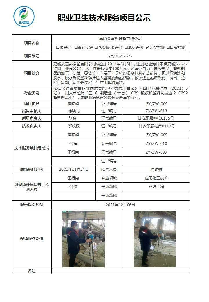 嘉峪关富邦橡塑有限公司职业病危害因素检测