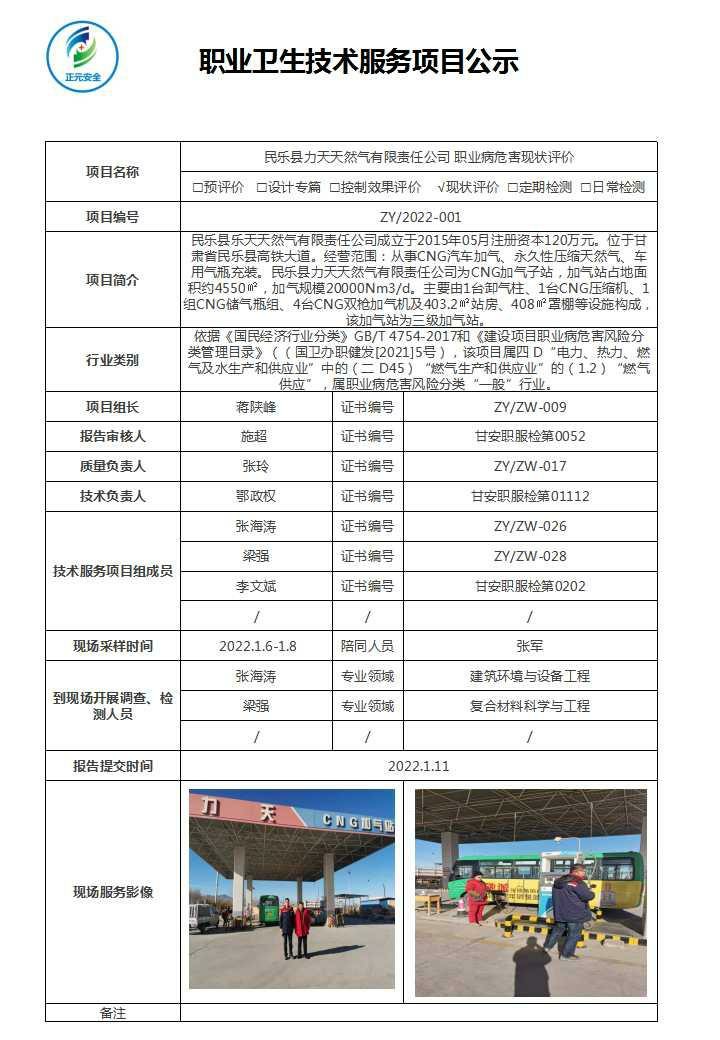 民乐县力天天然气有限责任公司职业病危害现状评价
