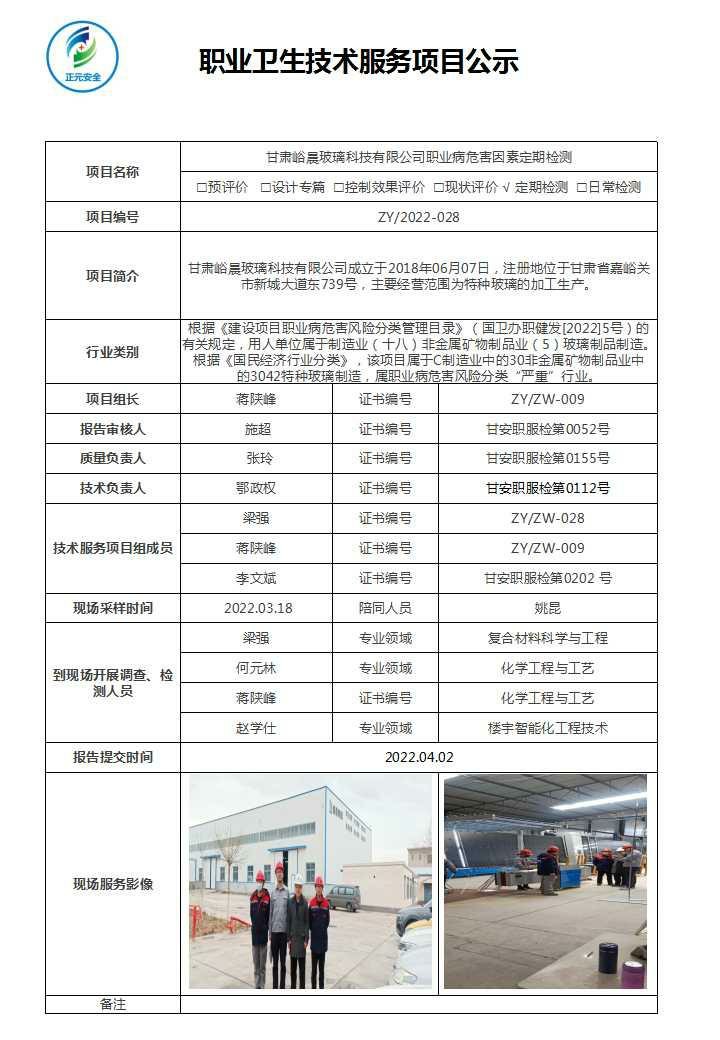 甘肃峪晨玻璃科技有限公司特种玻璃加工项目职业病危害因素检测