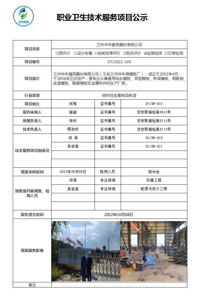 兰州华丰建筑器材有限公司职业病危害因素检测