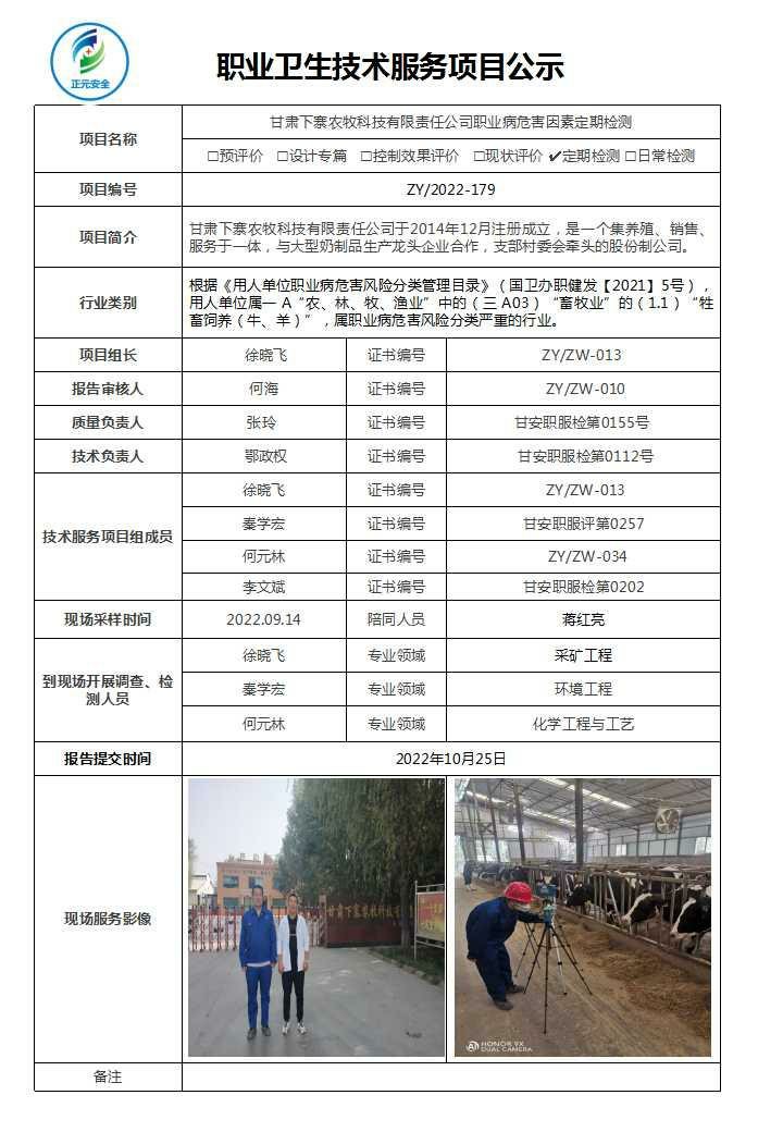甘肃下寨农牧科技有限责任公司职业病危害因素检测