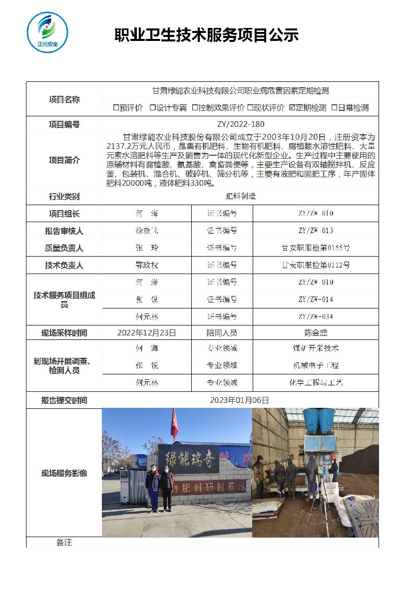 甘肃绿能农业科技股份有限公司职业病危害因素检测