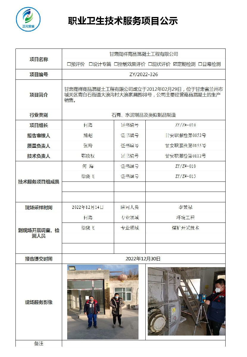 甘肃陇祥商品混凝土工程有限公司职业病危害因素检测