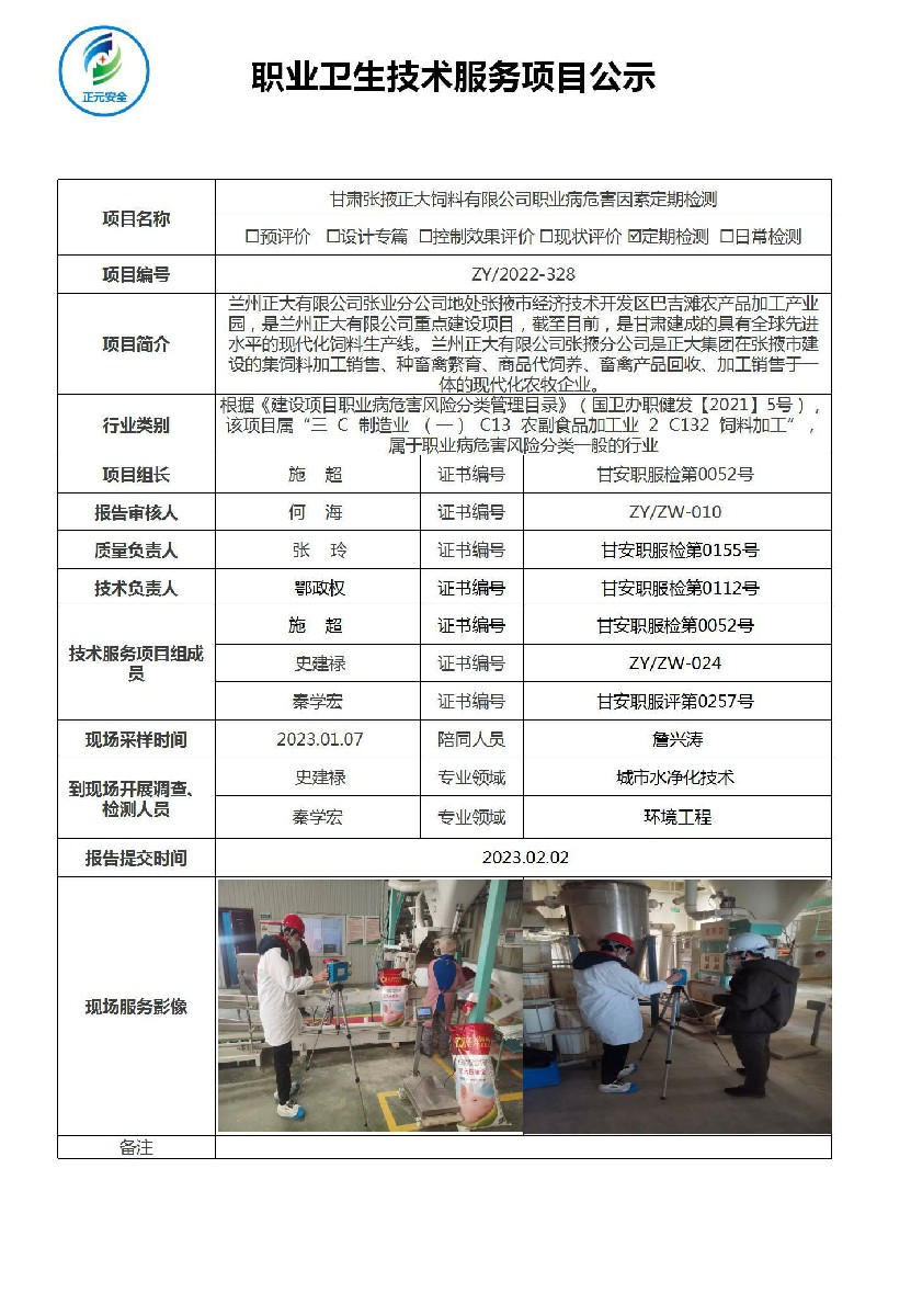 甘肃张掖正大饲料有限公司职业病危害因素检测