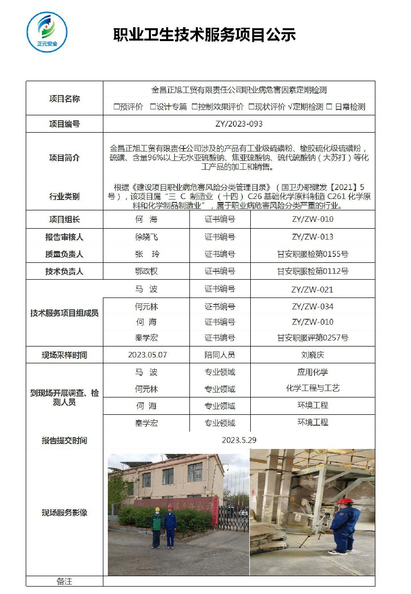 金昌正旭工贸有限责任公司职业病危害因素检测