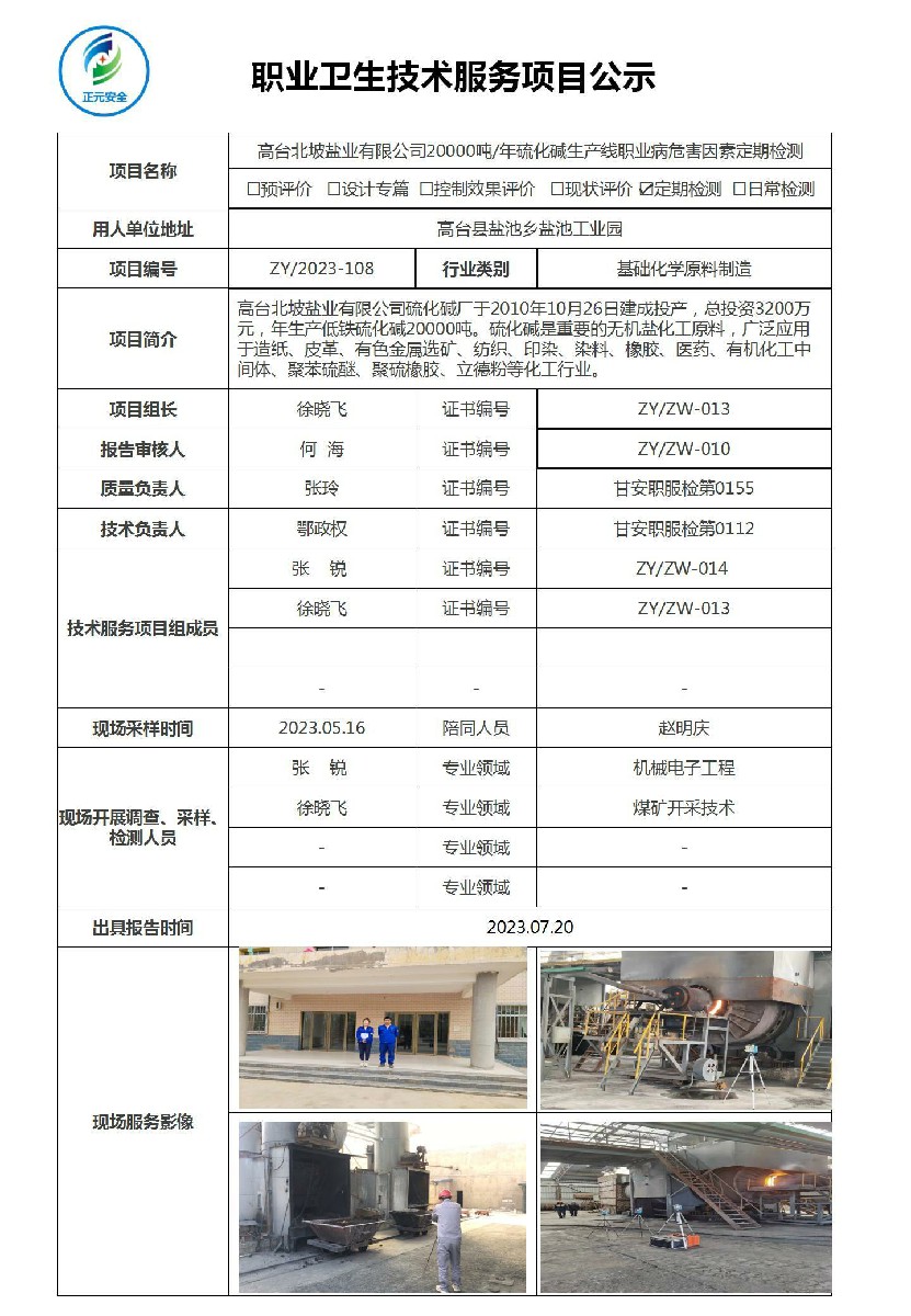高台北坡盐业有限公司20000吨/年硫化碱生产线职业病危害因素检测