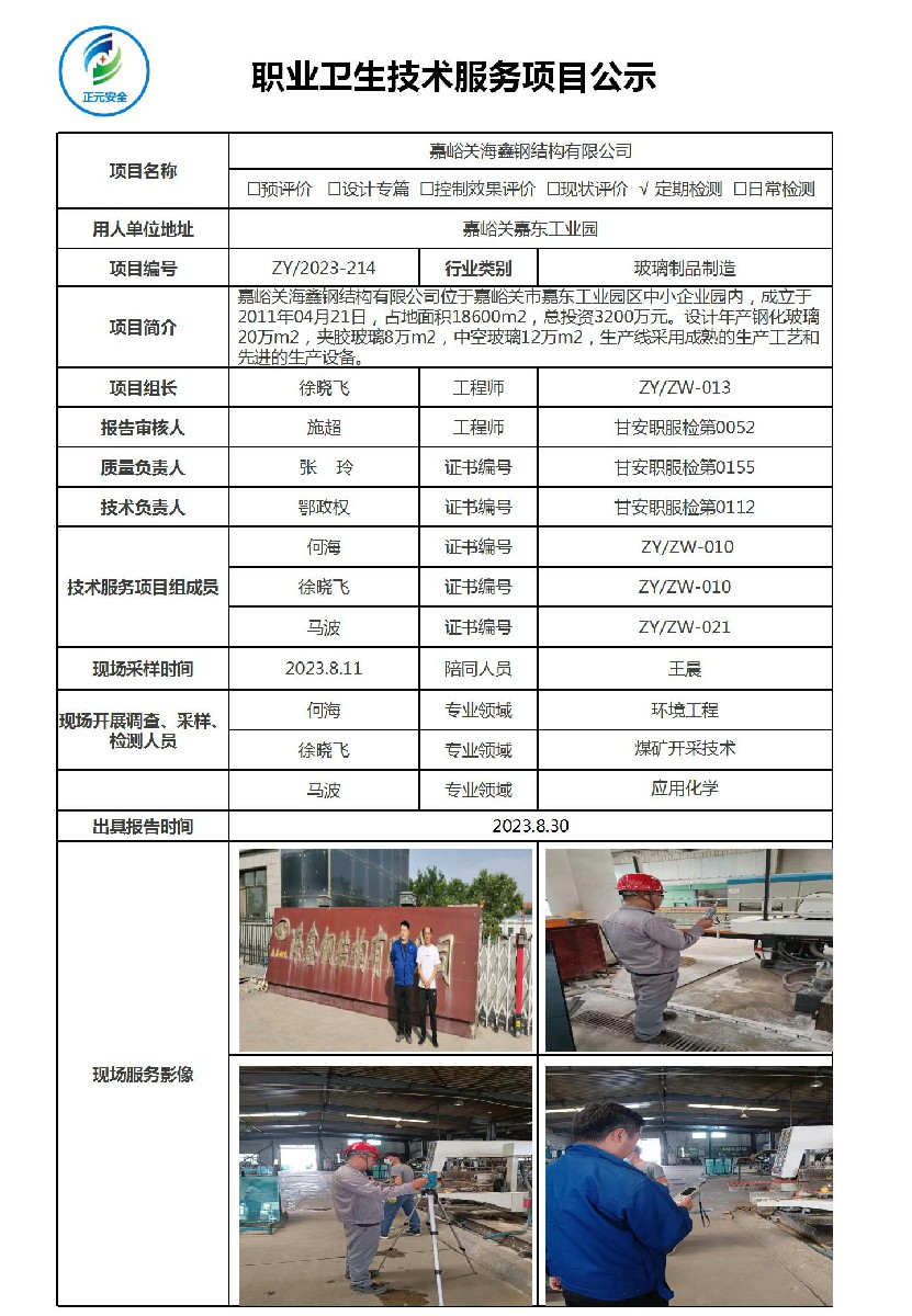 嘉峪关海鑫钢结构有限公司职业病危害因素检测