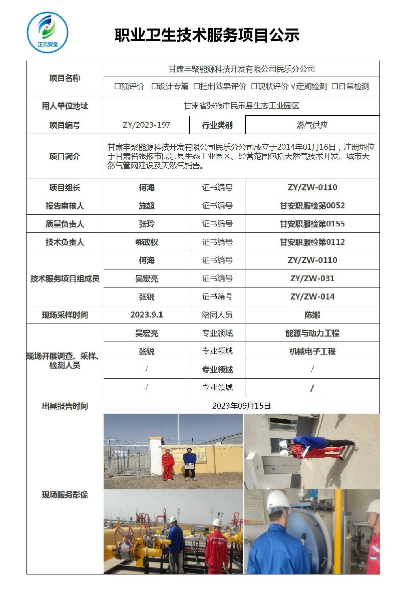 民乐县城区及工业园区天然气供气支线项目职业病危害因素检测