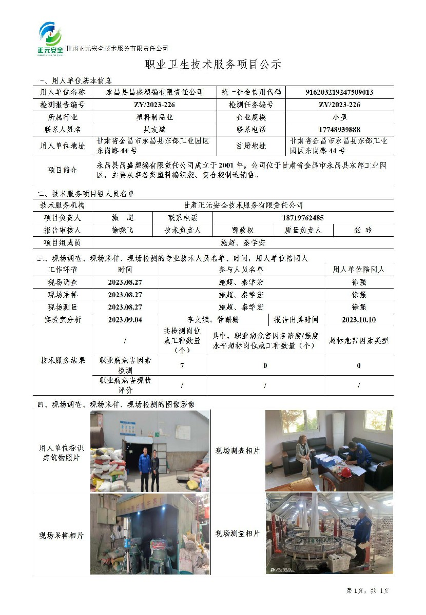 永昌县昌盛塑编有限责任公司职业病危害因素检测