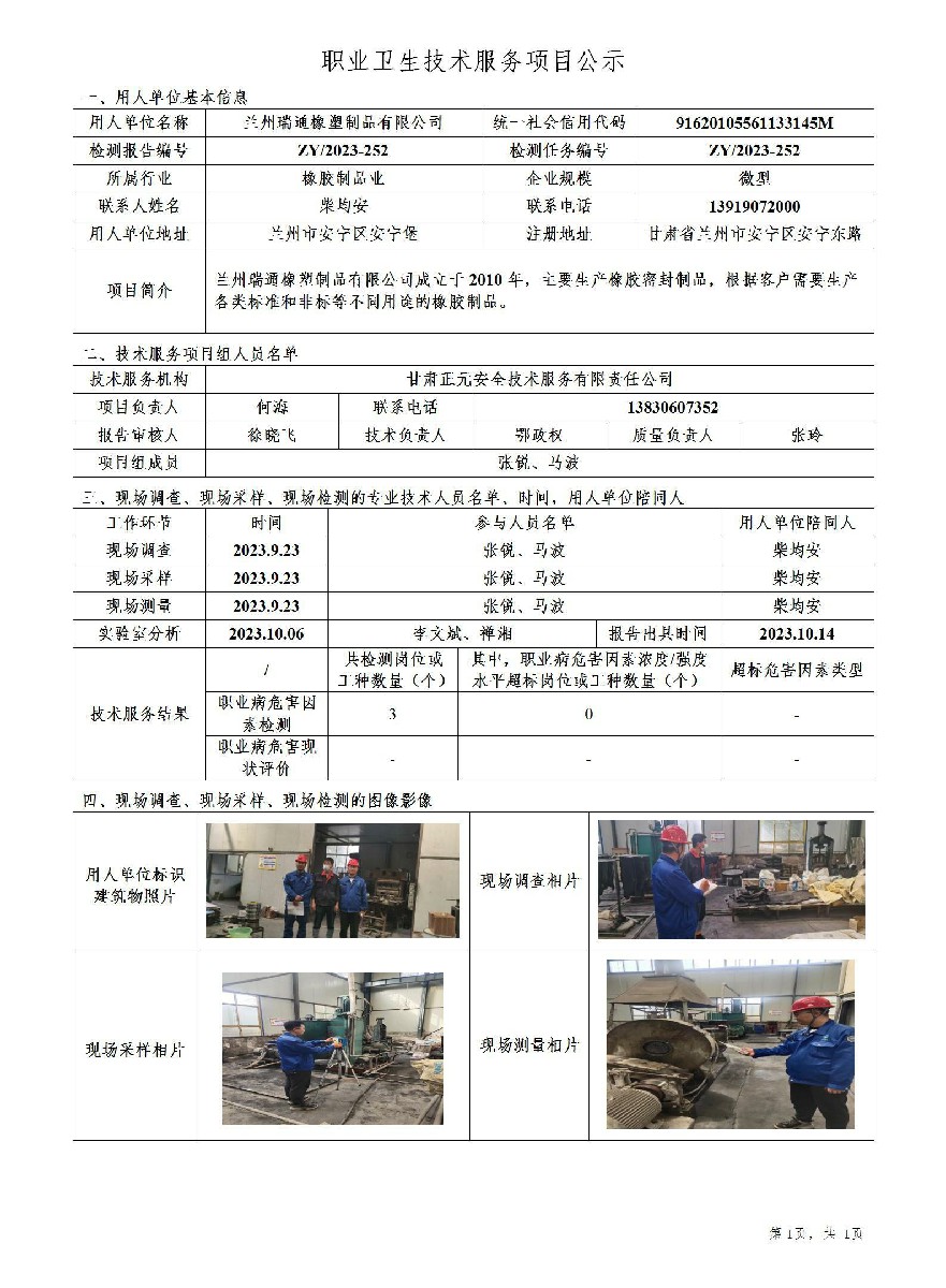 兰州瑞通橡塑制品有限公司职业病危害因素检测
