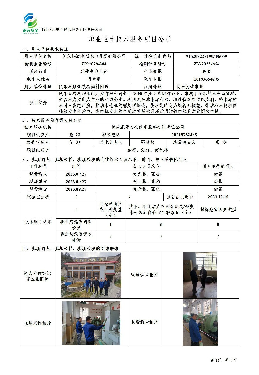 民乐县海潮坝水电开发有限公司职业病危害因素定期检测