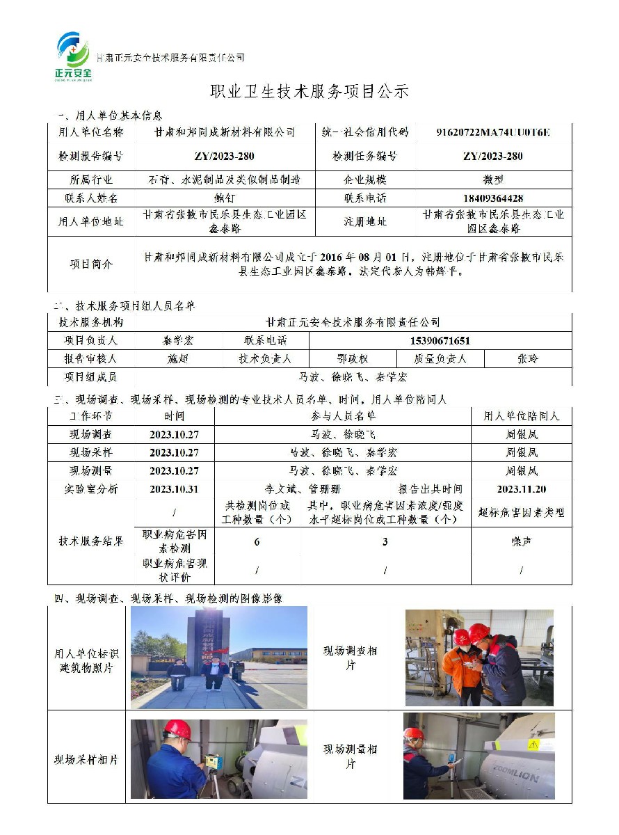 甘肃和邦同成新材料有限公司混凝土搅拌生产线及制砖生产线职业病危害因素检测