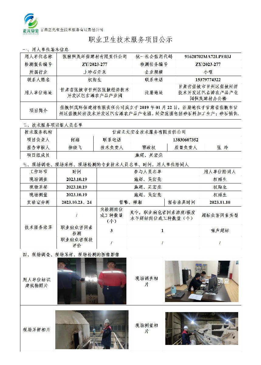 张掖恒茂环保建材有限责任公司职业病危害因素检测
