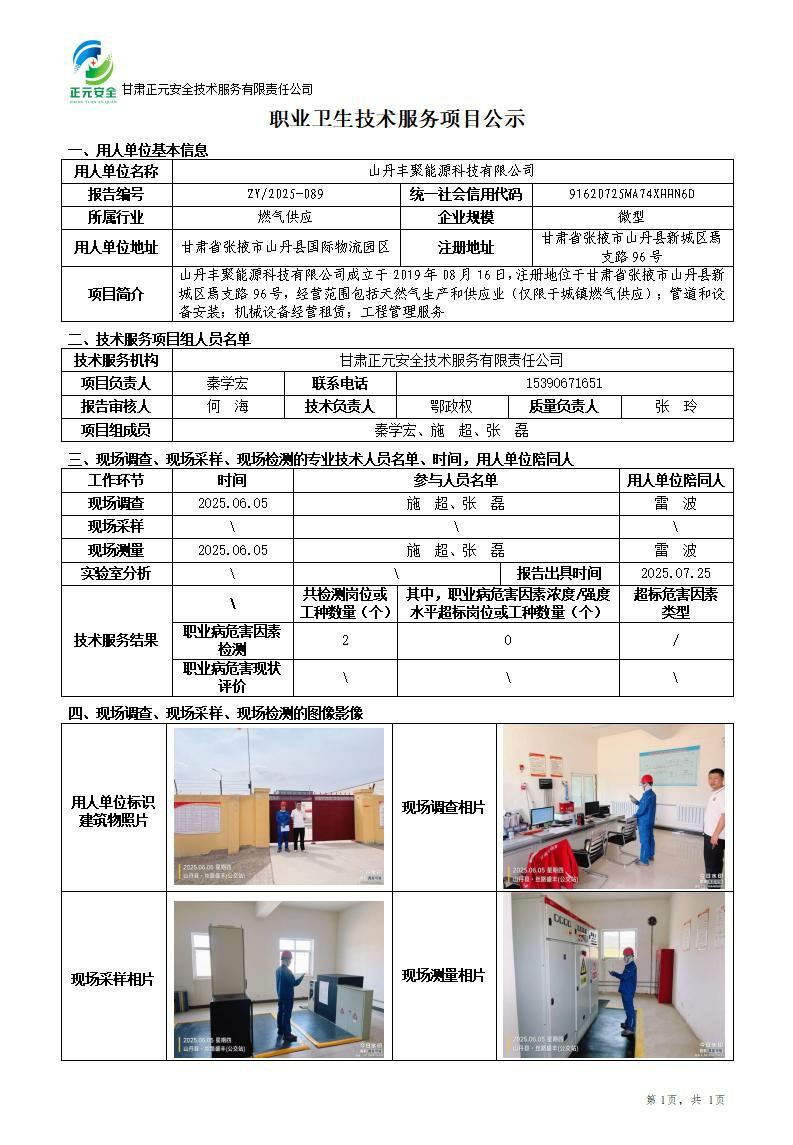山丹县天然气官网输配项目山丹调压站职业病危害因素定期检测