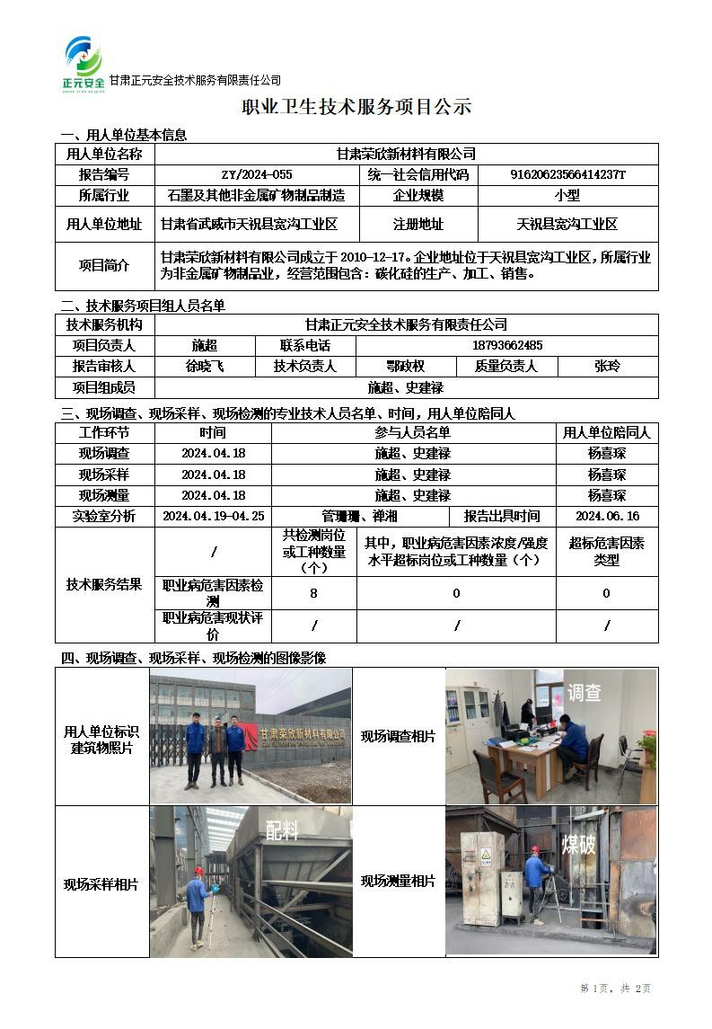 甘肃荣欣新材料有限公司职业病危害因素检测