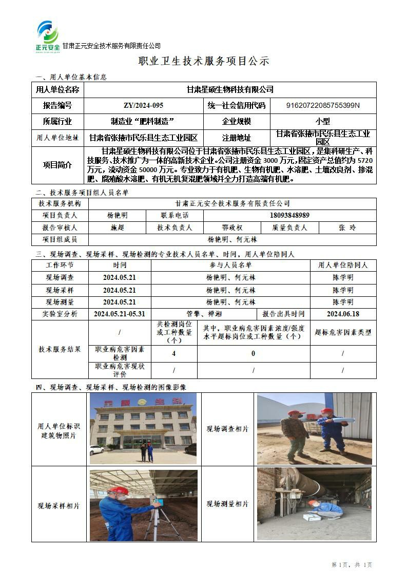 甘肃星硕生物科技有限公司利用畜禽粪便10万吨生物有机肥项目职业病危害因素检测