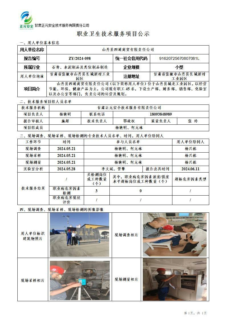 山丹县四通商贸有限责任公司职业病危害因素检测
