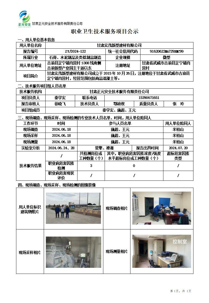 甘肃宏茂新型建材有限公司职业病危害因素检测