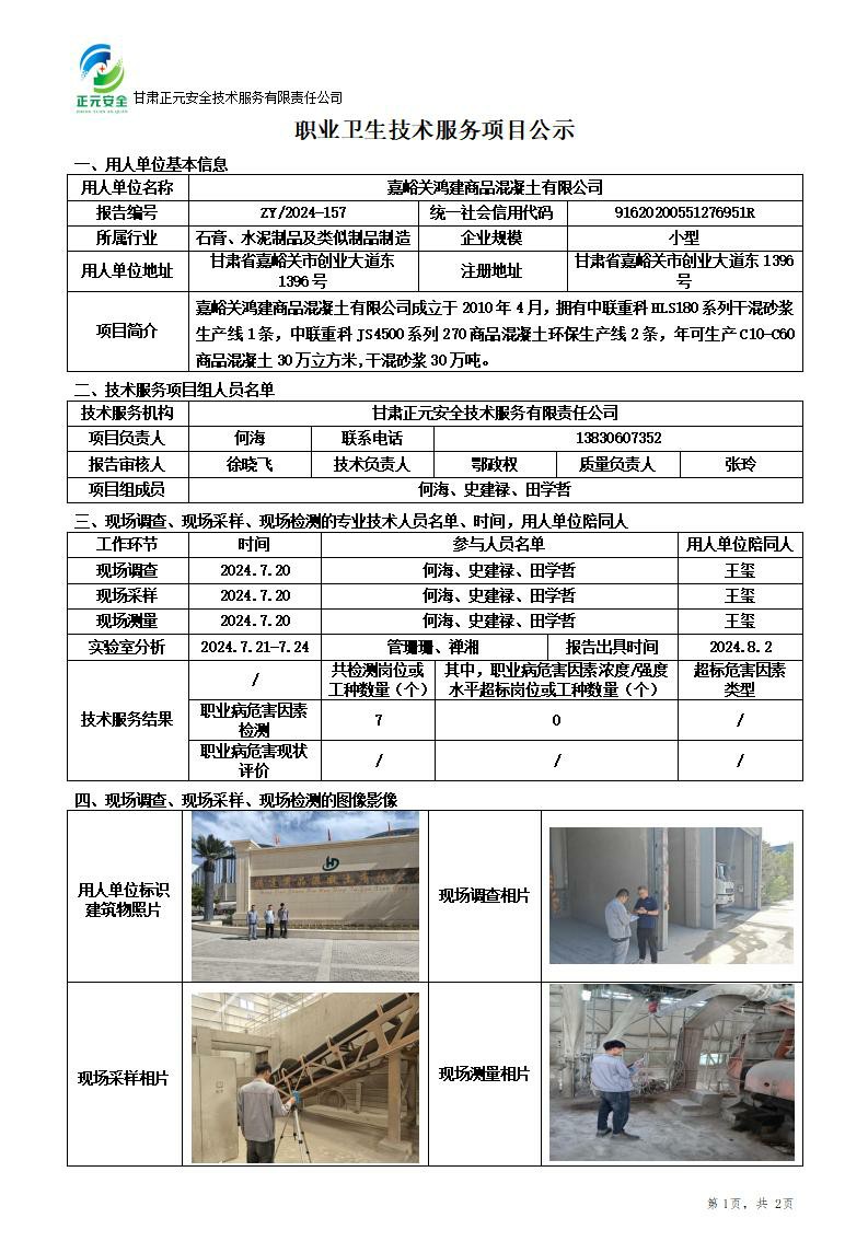 张掖市宏能昌盛能源有限责任公司选煤厂职业病危害因素检测