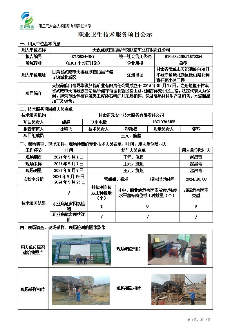 天祝藏族自治县华锐彭措矿业有限责任公司职业病危害因素检测