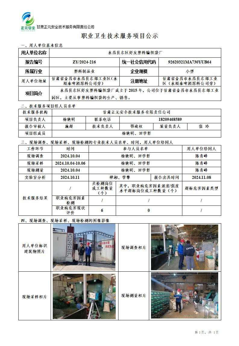 永昌县东区好友塑料编织袋厂职业病危害现状评价