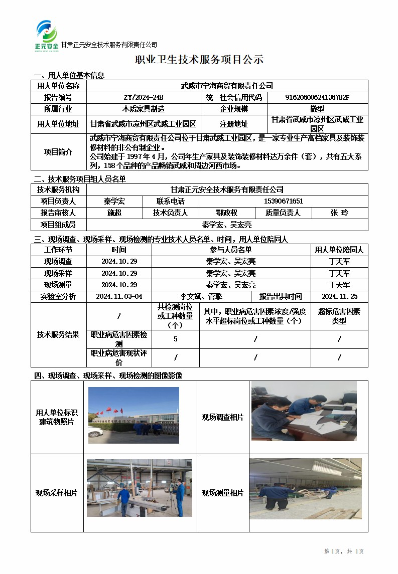 武威市宁海商贸有限责任公司职业病危害因素检测