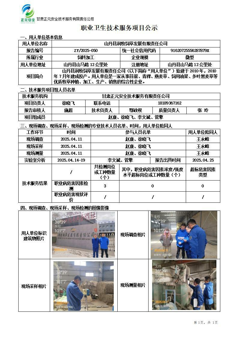 山丹县润牧饲草发展有限公司职业病危害因素检测