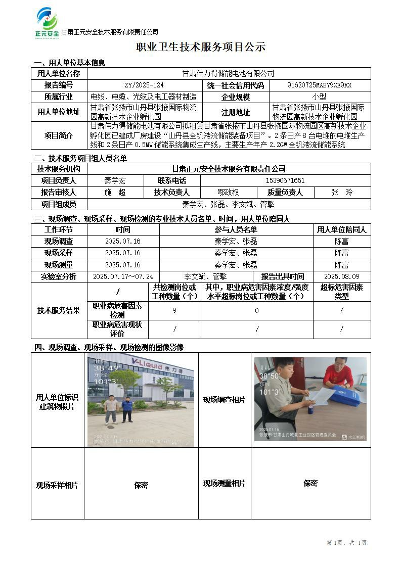 甘肃伟力得储能电池有限公司职业病危害因素检测