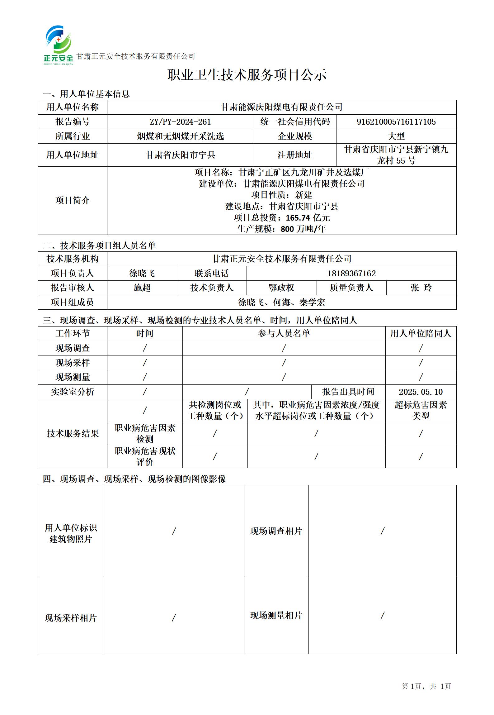 甘肃宁正矿区九龙川煤矿项目职业病危害预评价
