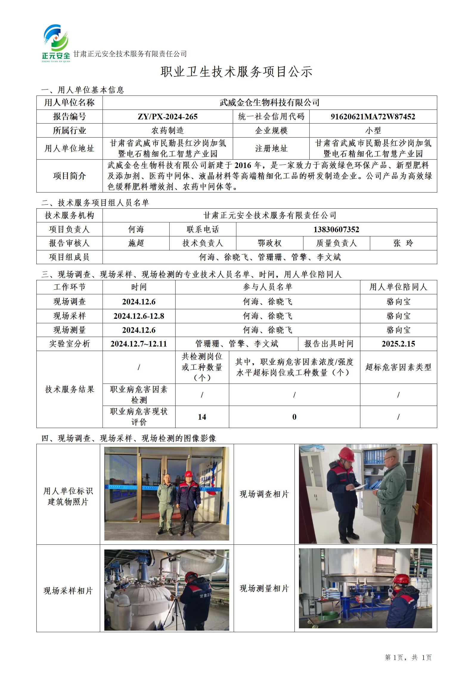 武威金仓生物科技有限公司年产5000t/a正丁基硫代磷酸三胺(NBPT)项目职业病危害现状评价