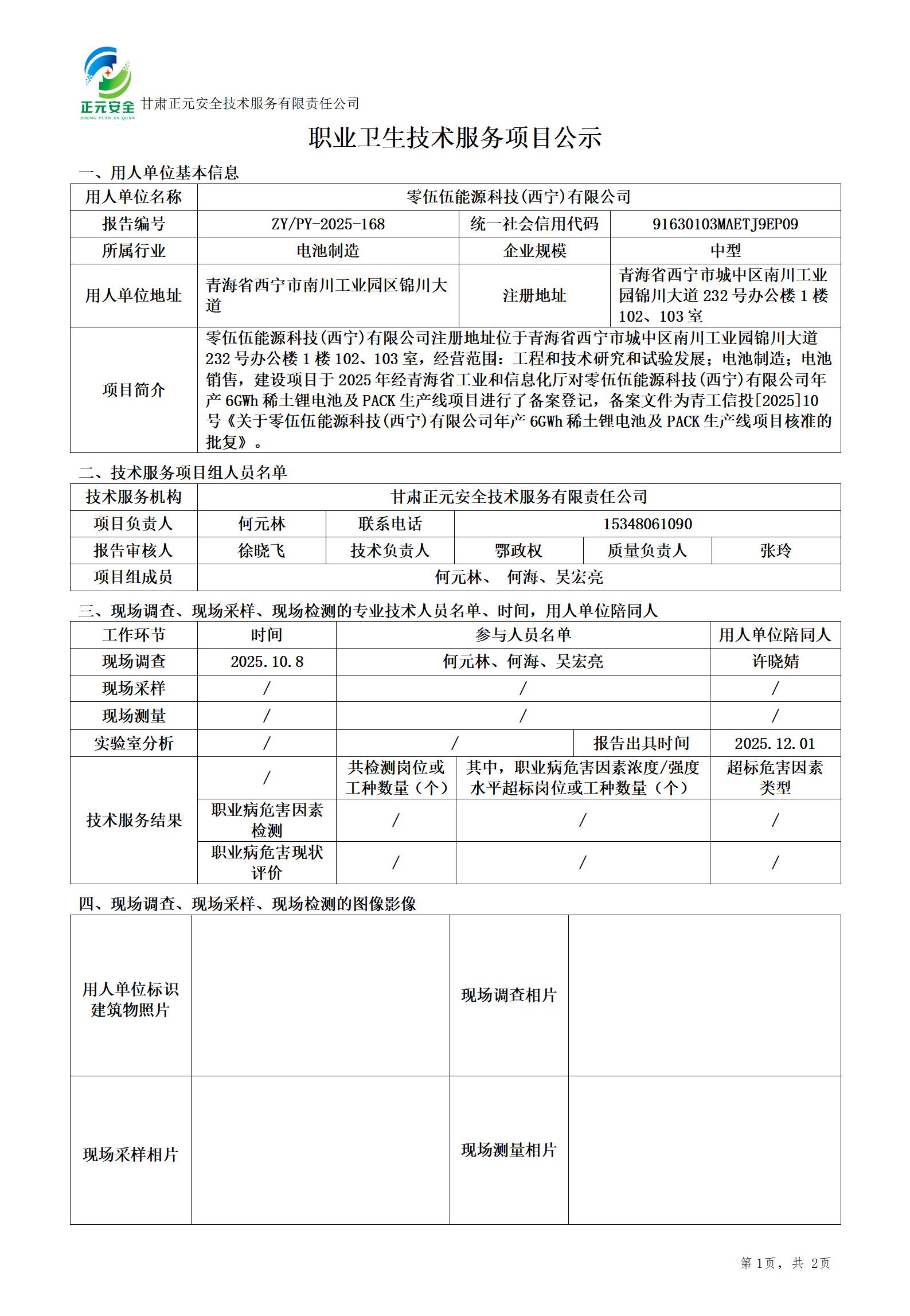 零伍伍能源科技(西宁)有限公司年产 6GWh稀土锂电池及PACK生产线建设项目职业病危害预评价