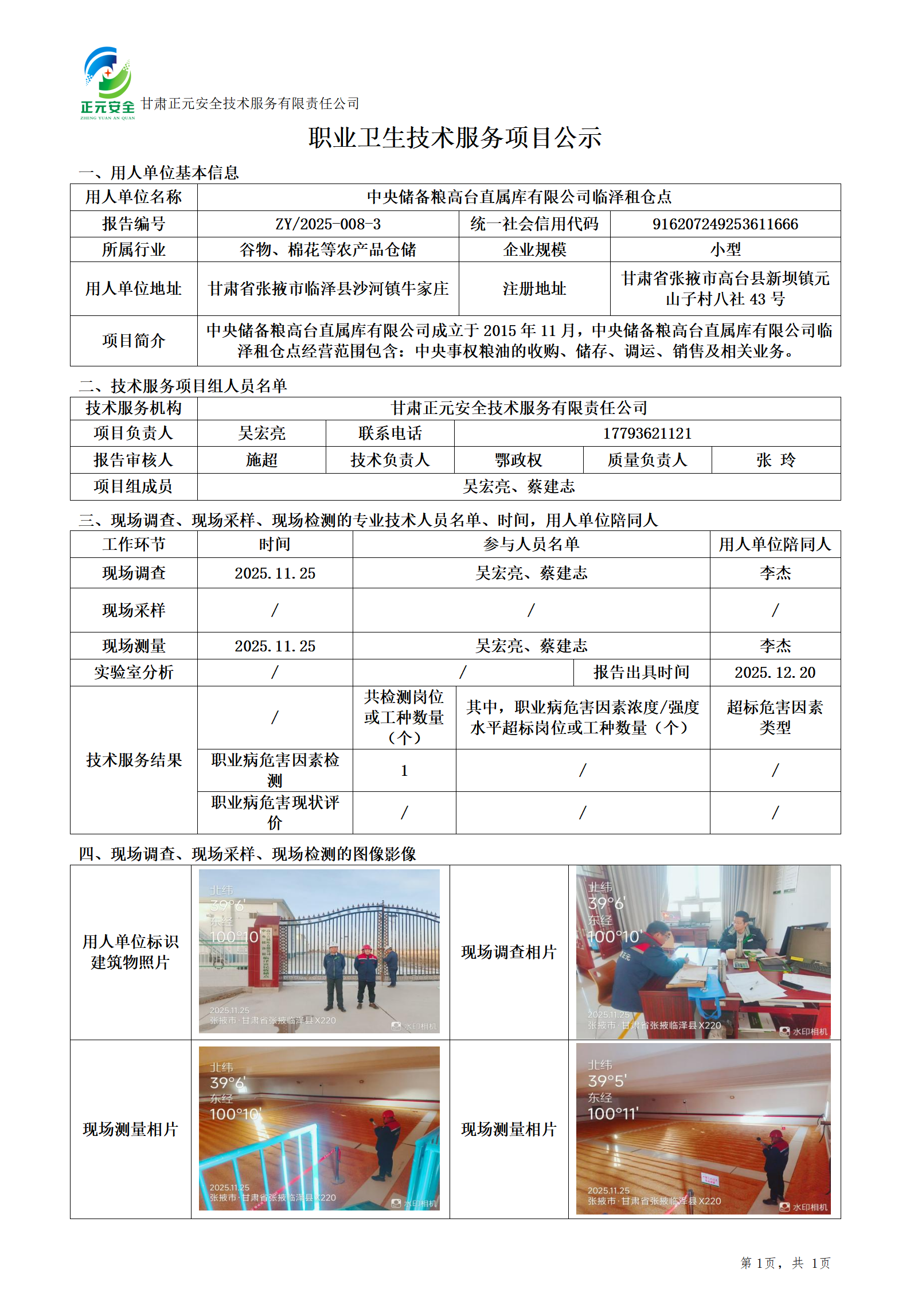 中央储备粮高台直属库有限公司职业病危害因素检测03