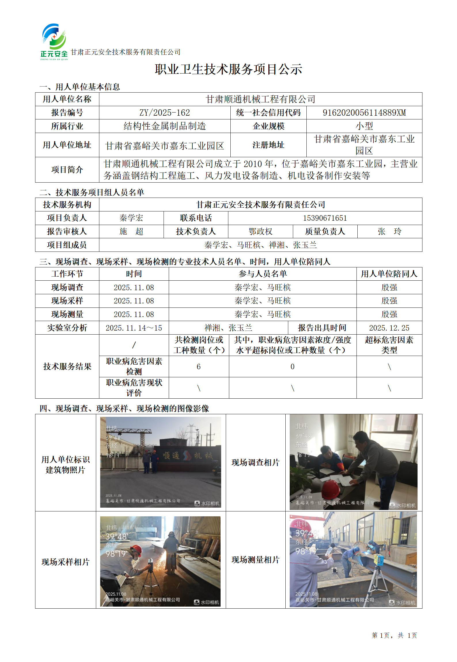 甘肃顺通机械工程有限公司职业病危害因素检测
