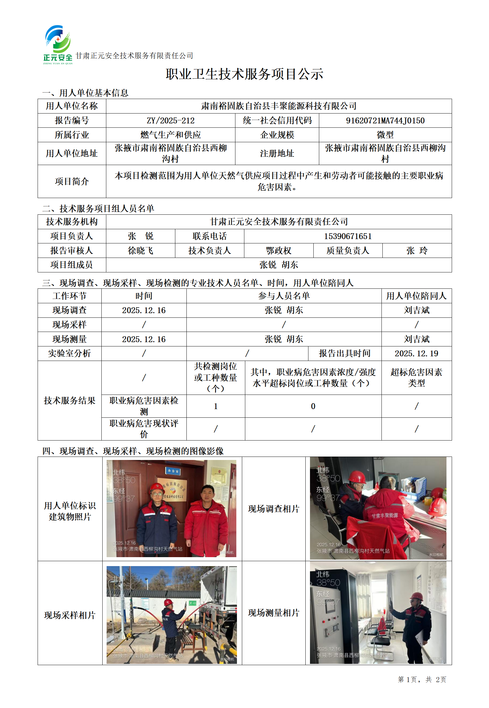 肃南裕固族自治县丰聚能源科技有限公司肃南县城天然气供应项目职业病危害因素定期检测
