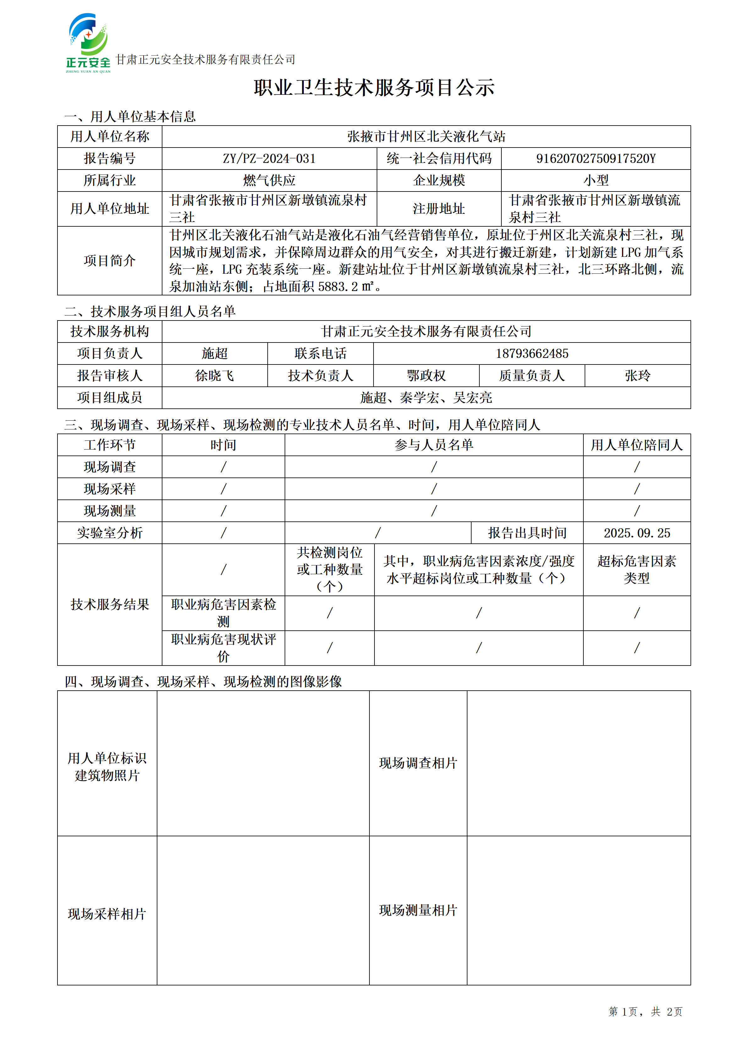 甘州区北关液化石油气站项目职业病危害防护设施设计