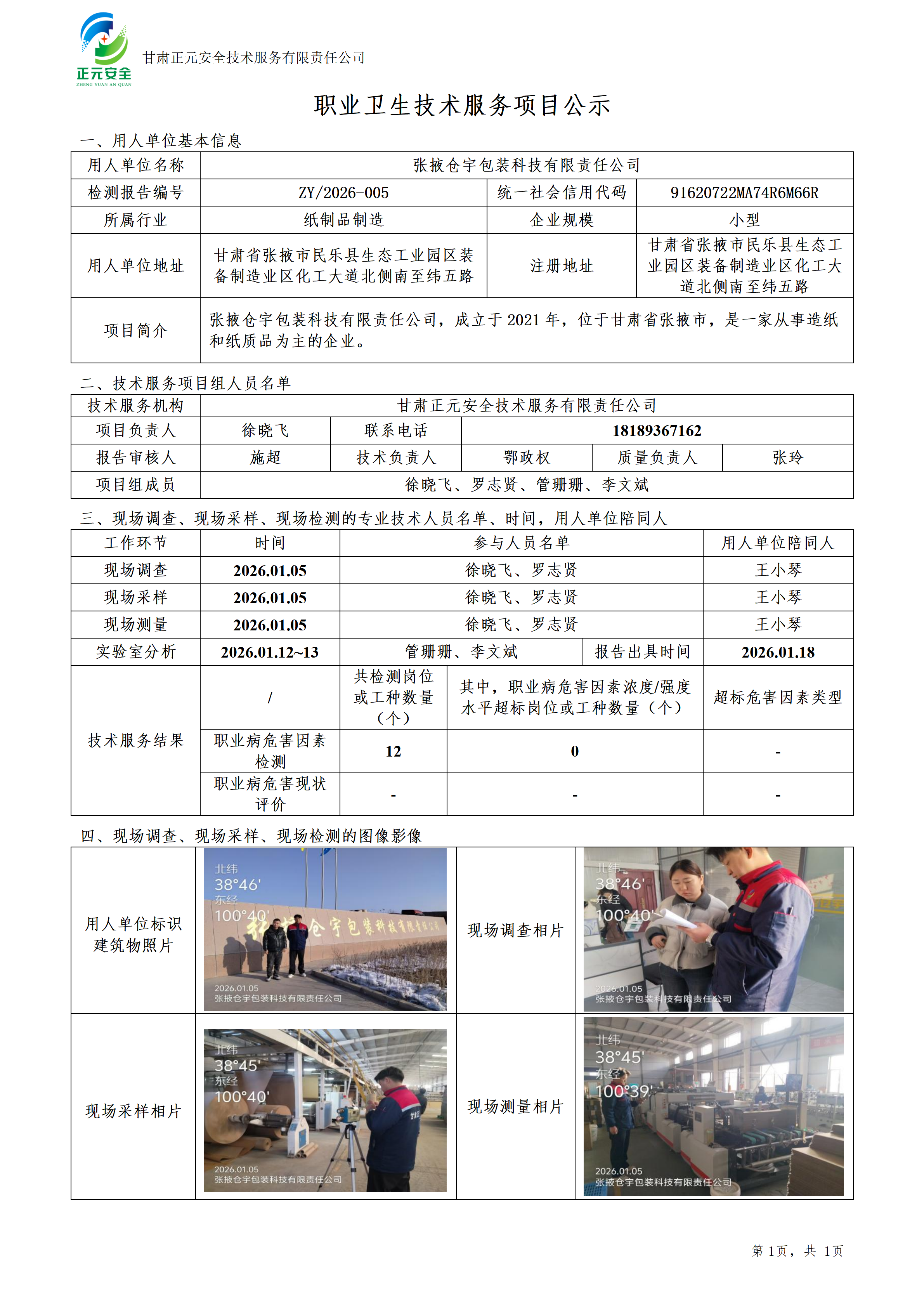 张掖仓宇包装科技有限责任公司职业病危害因素检测
