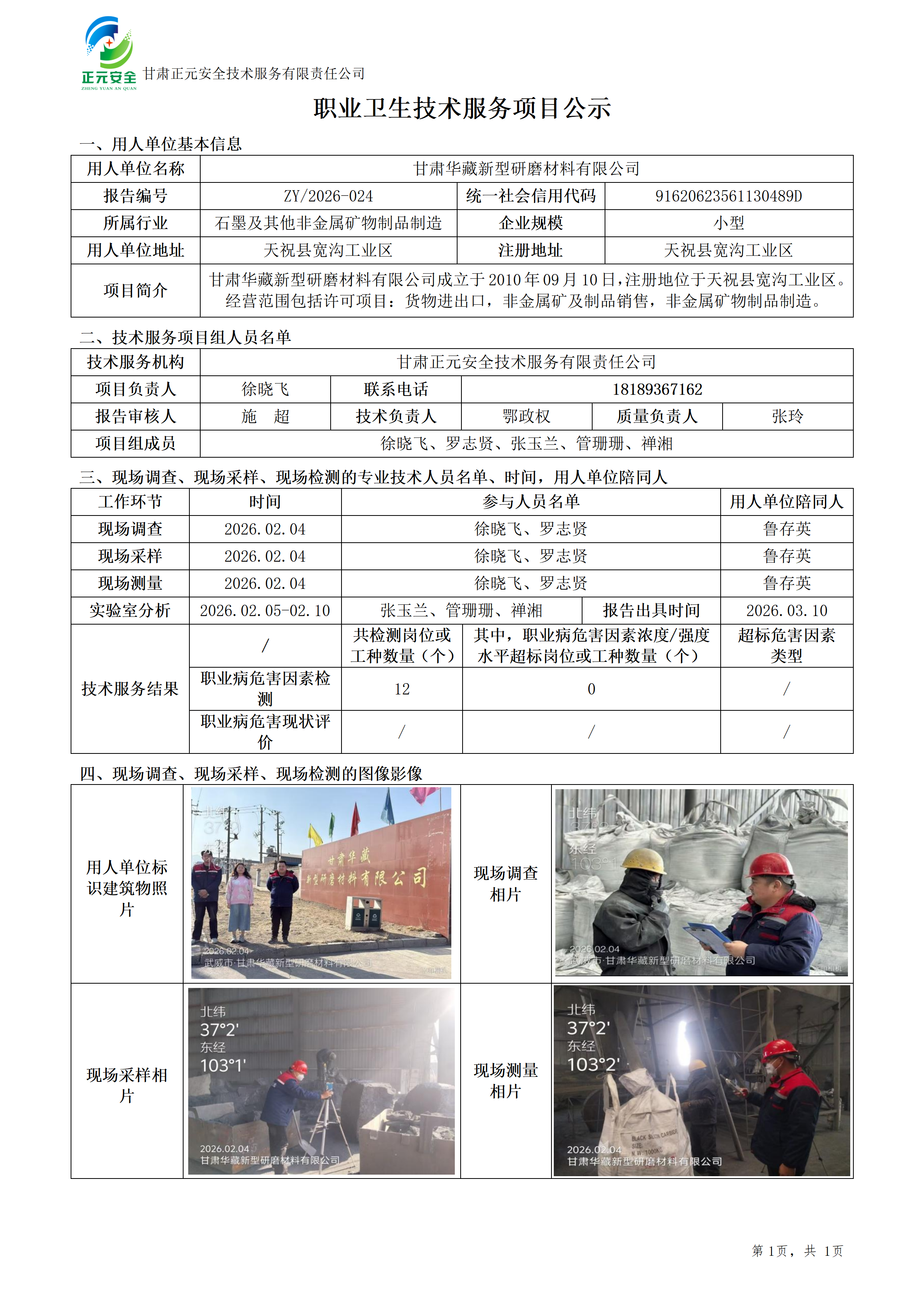 甘肃华藏新型研磨材料有限公司职业病危害因素检测