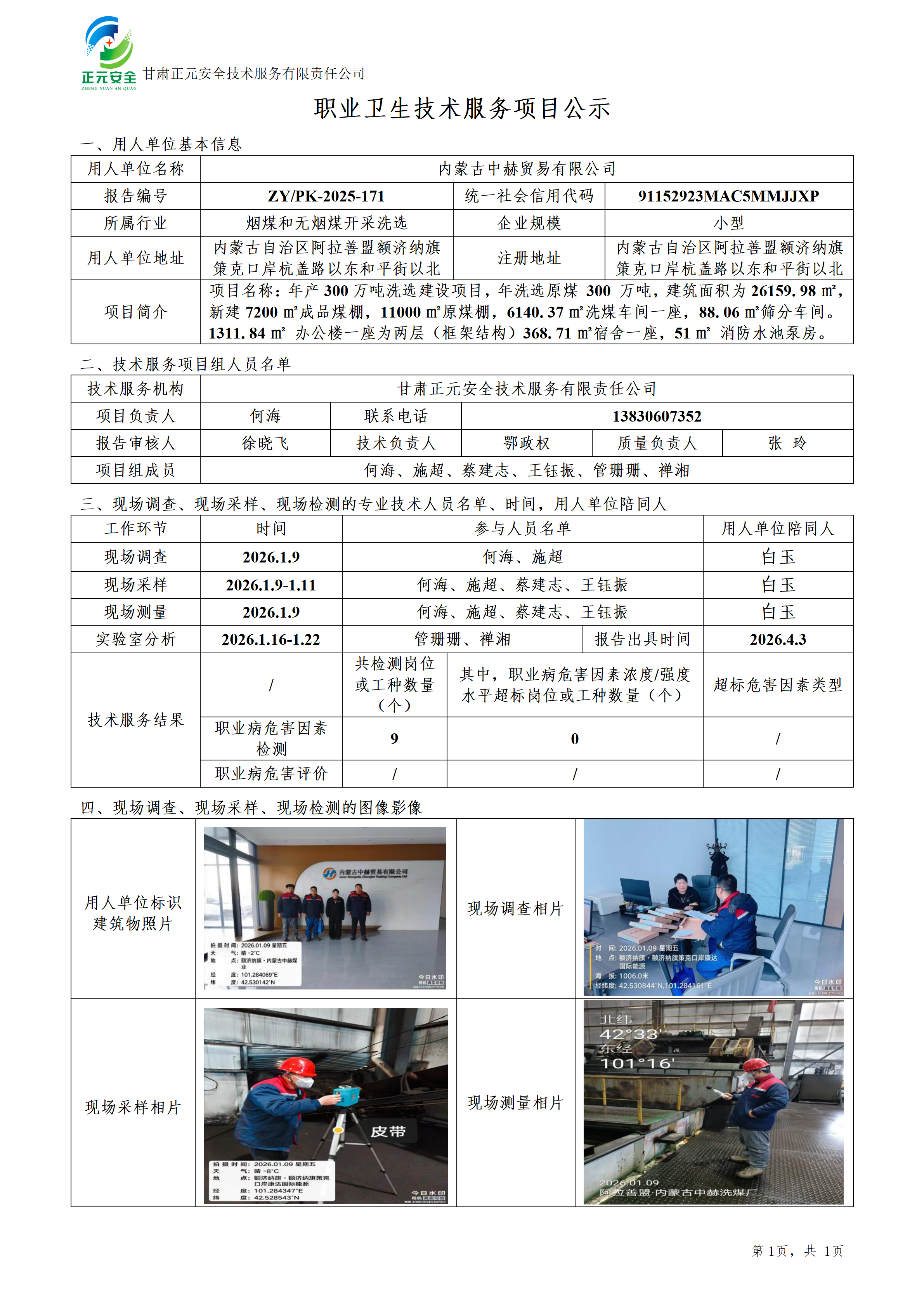 内蒙古中赫贸易有限公司年产300万吨洗选建设项目职业病危害控制效果评价